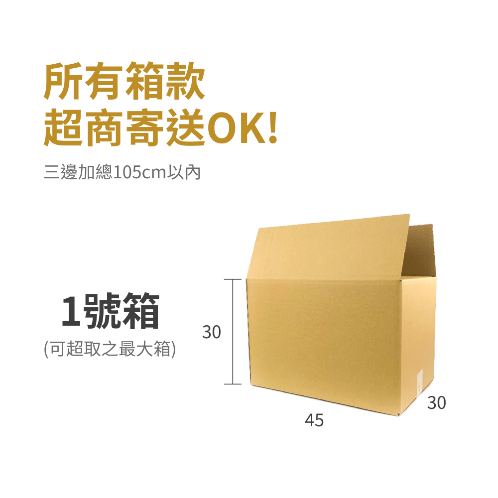 2.全部都是超商可以寄送的紙箱,紙箱尺寸三邊加總105cm以內,均為超商可用紙箱,超商最大能接受紙箱尺寸為45x30x30cm。